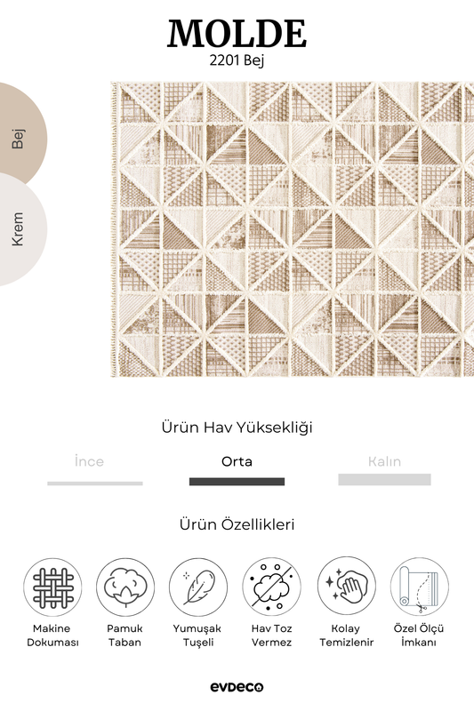 Seka Halı Molde 2201 Krem Etnik Desenli Modern Salon Halısı