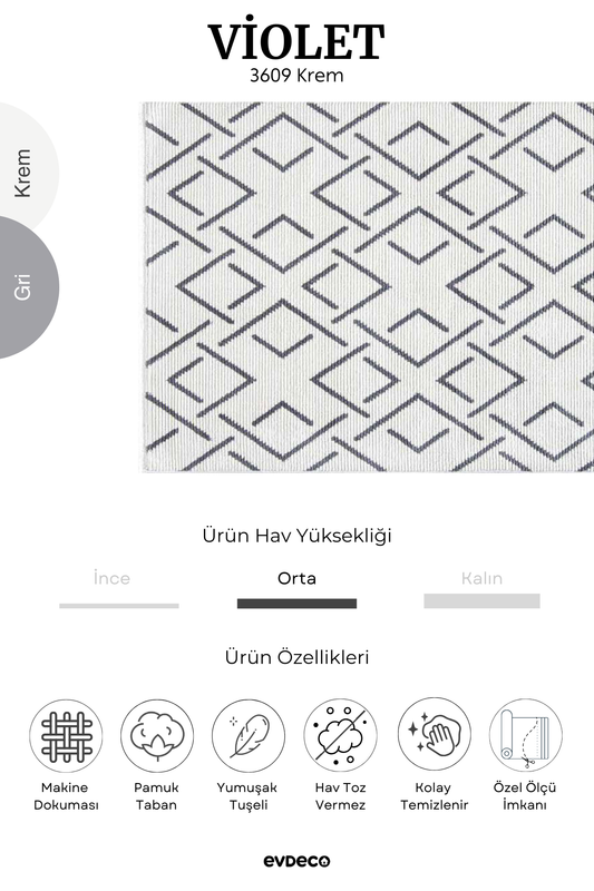 Seka Halı Violet 3609 Krem Yumuşak Dokulu Modern Salon Halısı