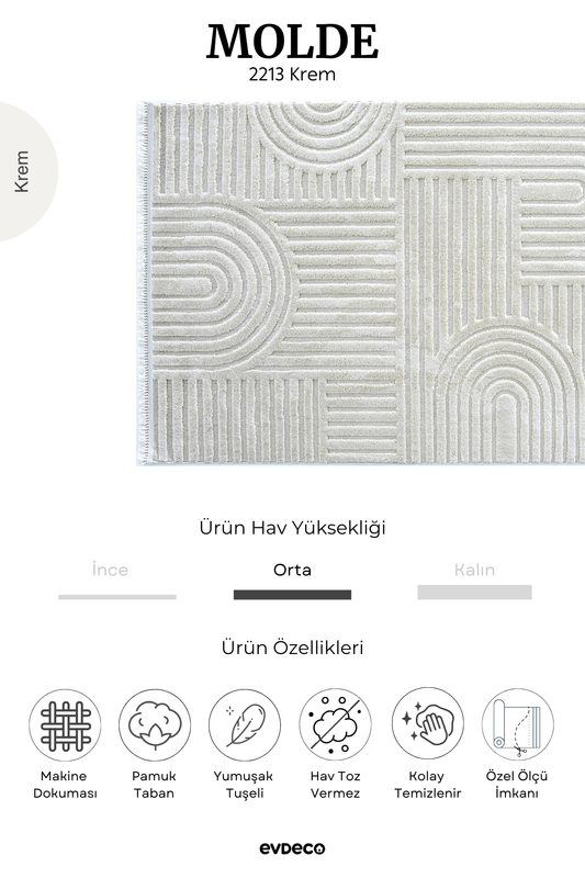 Seka Halı Molde 2213 Krem Etnik Desenli Modern Salon Halısı