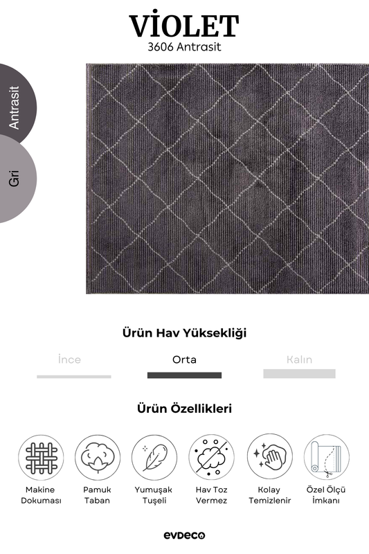 Seka Halı Violet 3606 Antrasit Yumuşak Dokulu Modern Salon Halısı