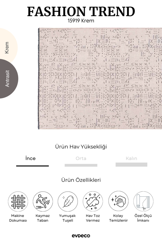 Seka Halı Fashion Trend Krem Etnik Desenli Halı