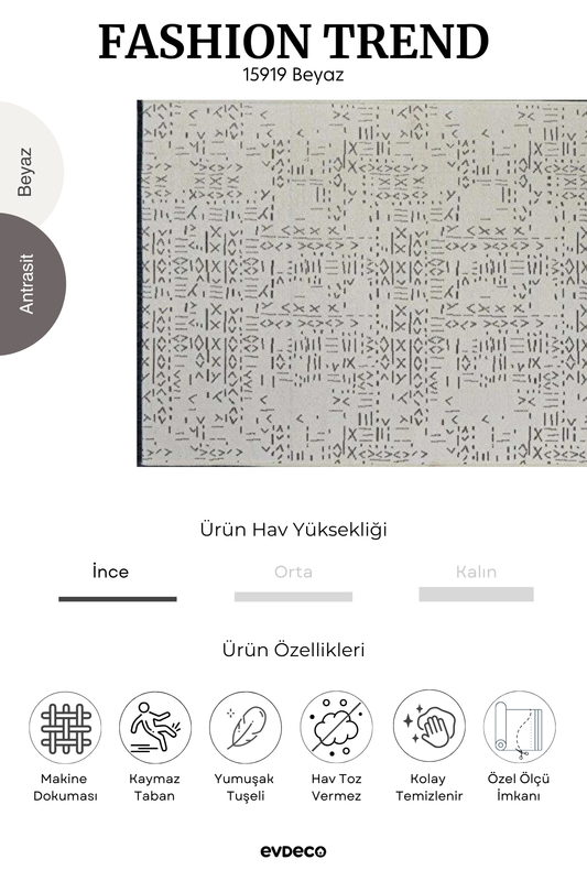 Seka Halı Fashion Trend Beyaz Etnik Desenli Halı