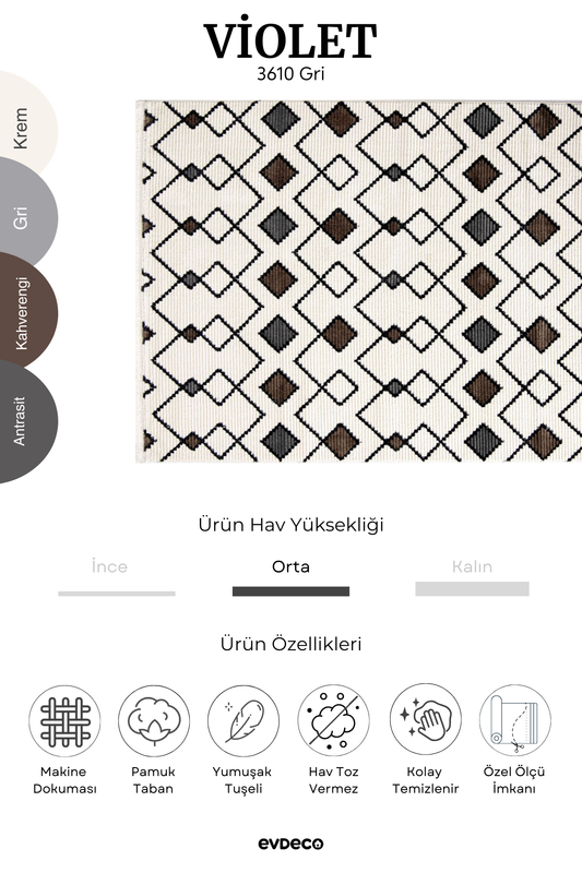 Seka Halı Violet 3605 Gri Yumuşak Dokulu Modern Salon Halısı