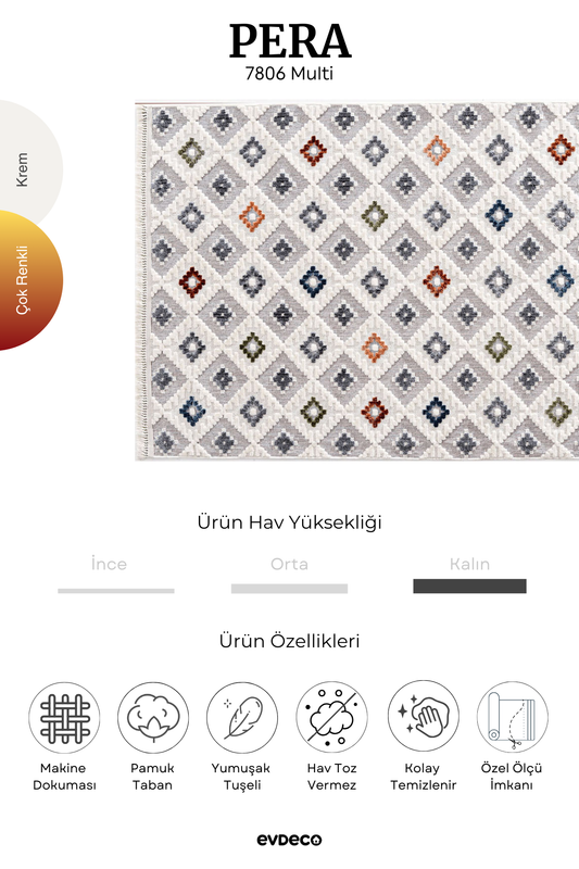 Seka Halı Pera 7808 Multi Yumuşak Dokulu Modern Salon Halısı