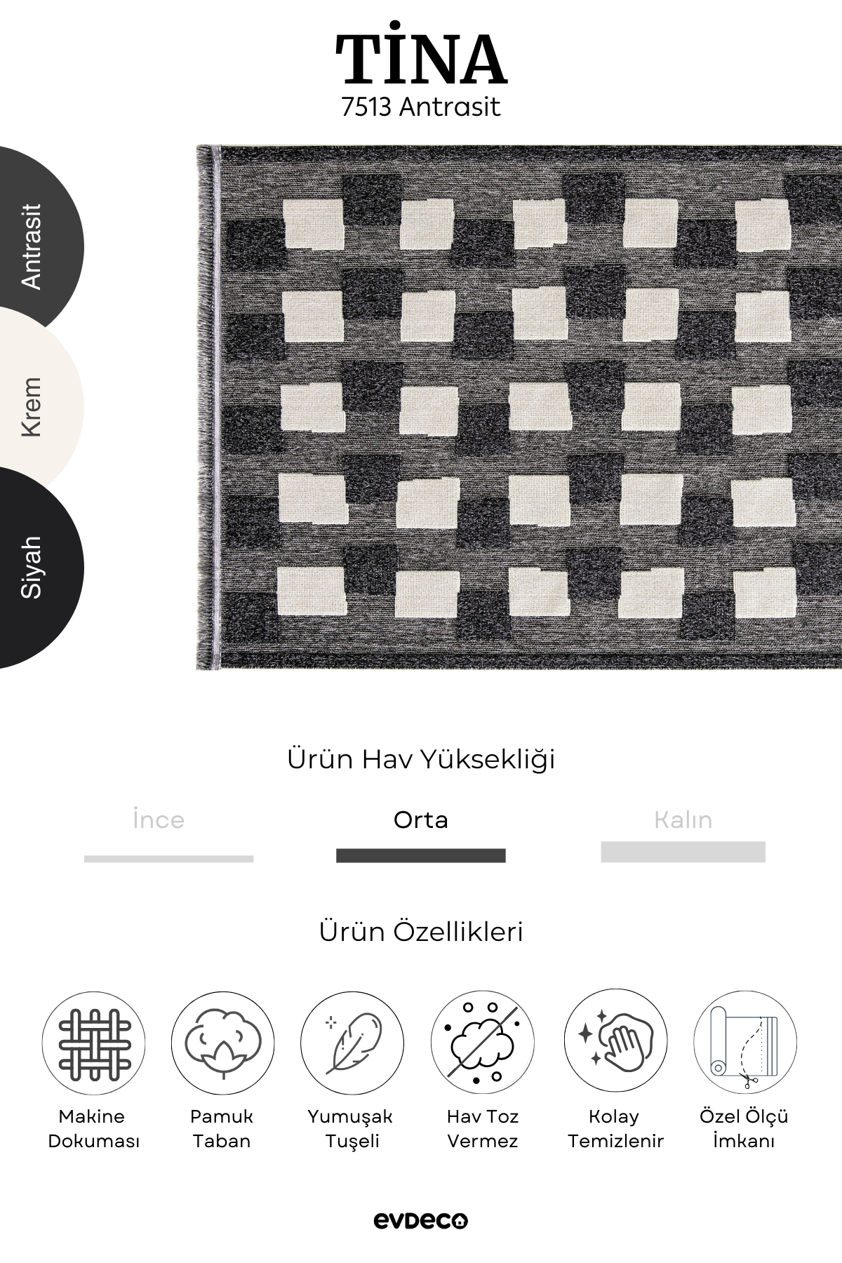 Tina serisi hafifliği ve boyutlu desenleri ile ön plana çıkan modellerindendir. Ayrıca çok fazla çeşidi olan geometrik desenlere sahip Tina serisi ile evinize uygun halıyı daha kolay seçebilirsiniz. Desenlerinde gri, bej, beyaz ve antrasit renklere sahiptir. Püsküllü saçaklarıyla halıya şık ve dekoratif bir görüntü verir. Yan kenarları overlok dikişlidir. Tina jüt tabanlı, iplik türü polip olan makine halısıdır.