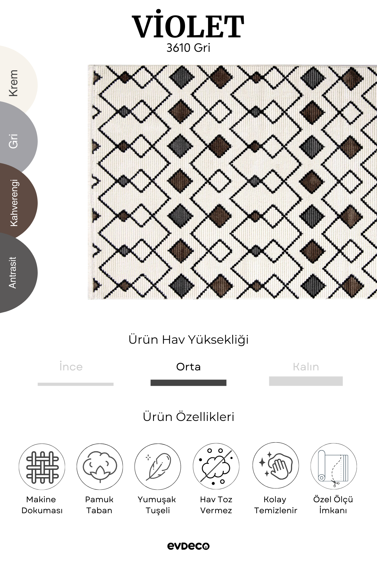 Seka Halı Violet 3610 Gri Yumuşak Dokulu Modern Salon Halısı