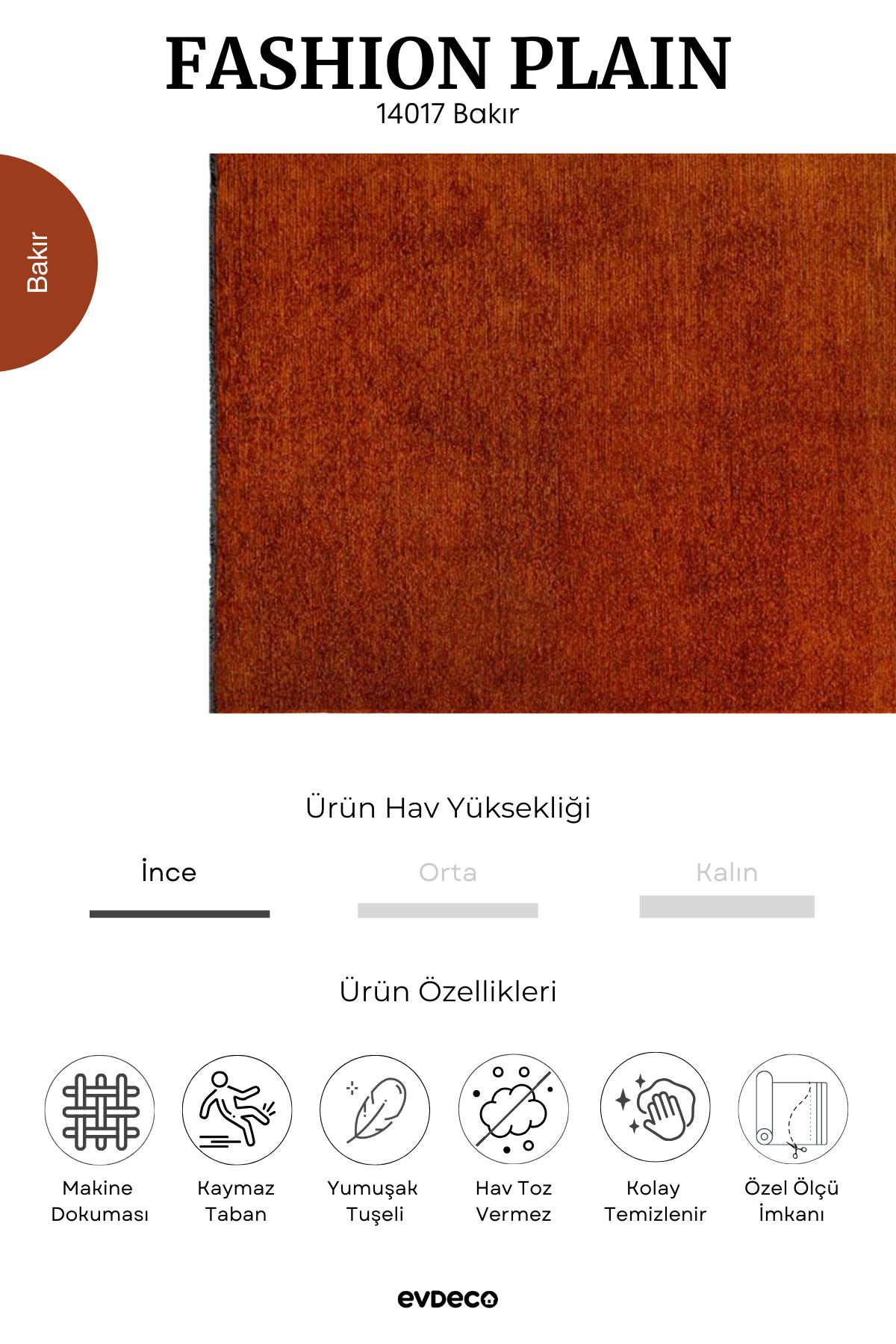 Seka Halı Fashion Plain Bakır Düz Dokuma Şönil Halı